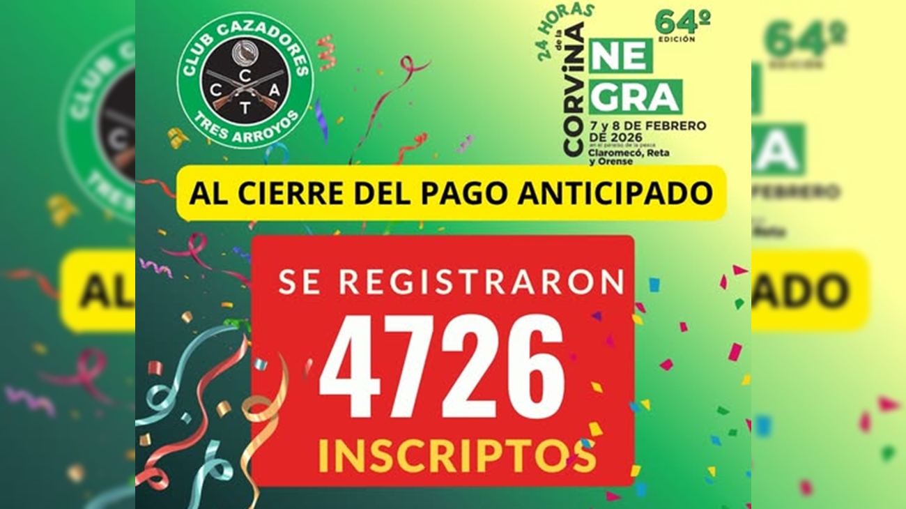 El tradicional concurso de pesca “24 Horas de la Corvina Negra”, organizado por el Club Cazadores de Tres Arroyos, continúa generando una gran expectativa de cara a su 64ª edición. En el período de inscripción anticipada se registraron 4.726 pescadores inscriptos, un número que confirma, una vez más, la fuerte convocatoria y el interés que despierta este emblemático certamen.