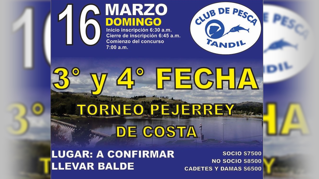 La convocatoria se anuncia para este domingo 16 desde las 6.30 hs, dando inicio el torneo a las 7 de la mañana. Serán dos torneos de una duración de tres horas, con cambios de 50 minutos por 10 de descanso. El costo de inscripción de $ 7.500 para los socios, $ 6.500 los cadetes y damas y $ 8.500 los no socios. Es indispensable llevar balde, de esta manera se devuelven las capturas al lago. La premiación es con trofeos a los ganadores, sumándose un sorteo de una orden de compra de $ 15.000.